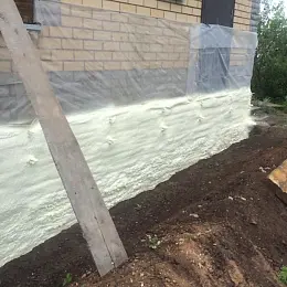- Задача: напыление ППУ для утепления фундамента дома с последующей гидроизоляцией полиуретановой мастикой ручного нанесения
